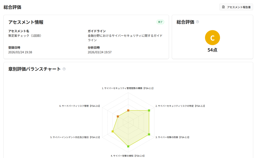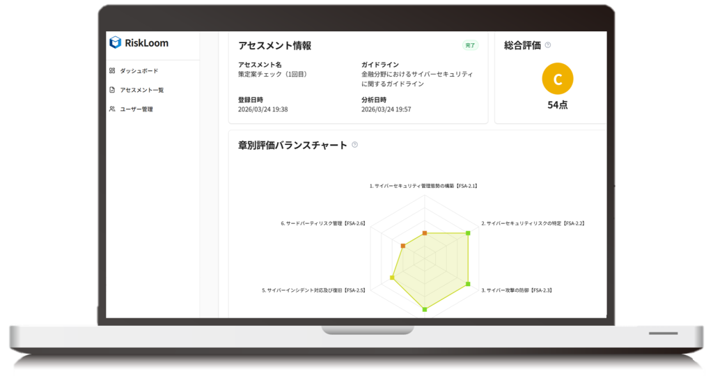 各種ガイドラインとの適合状況や潜在的なリスクをAIが分析・可視化するセキュリティ規程文書診断サービスです。