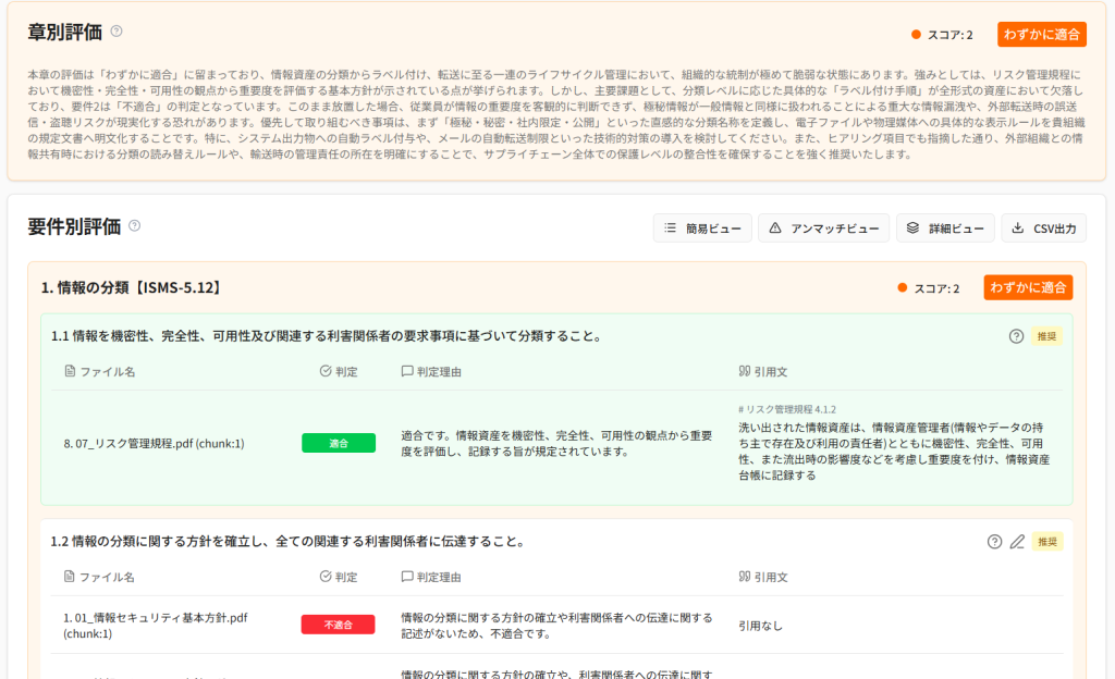 - ガイドライン要件ごとの適合度評価(5段階)