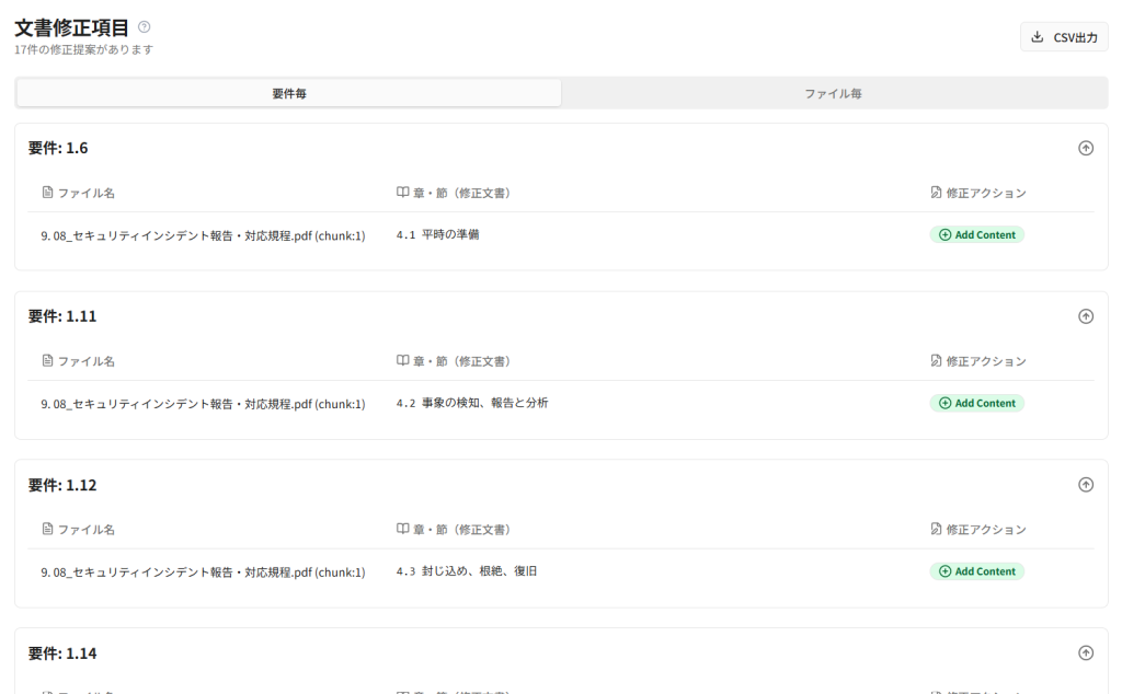 社内セキュリティ規程や手順書をアップロードすると、